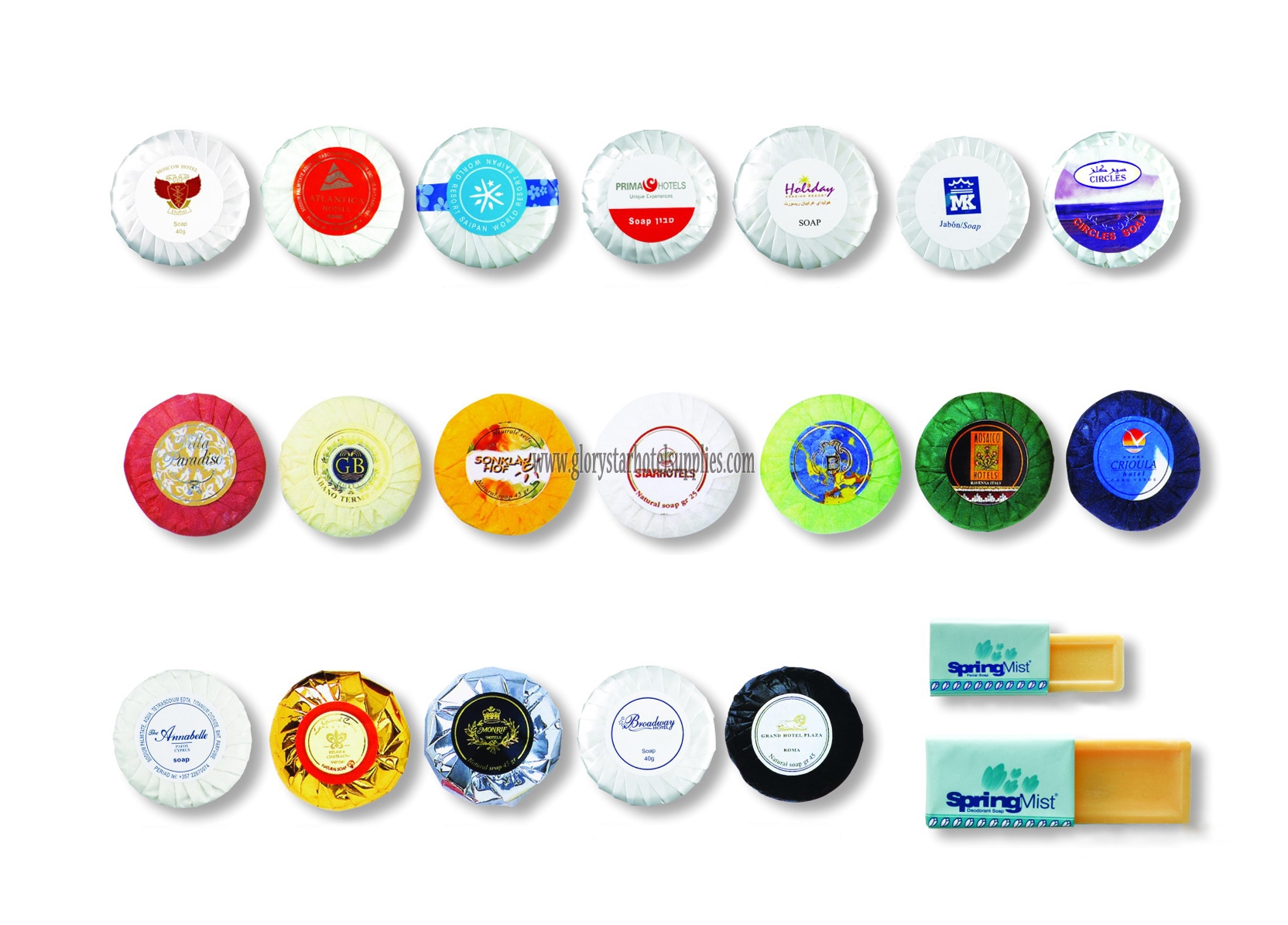 Collection of best sale hotel soaps in various shape and weight.