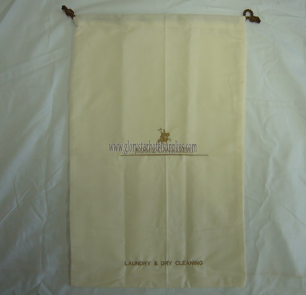 100% cotton twill laundry bag, logo embroidered, double pull string, size 60*25cm.