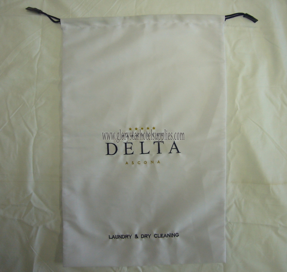 Terry cotton twill laundry bag, double pull string with PU cover, logo embroidered, size: 60*25cm.